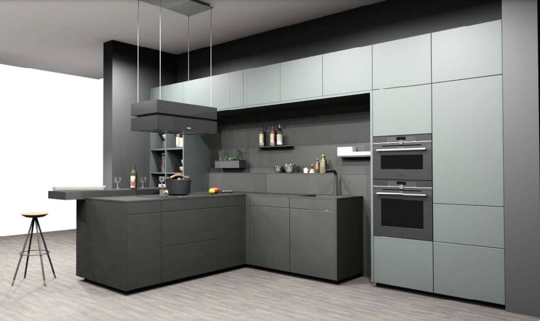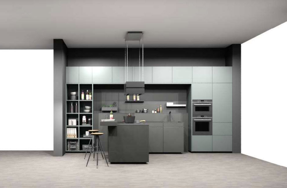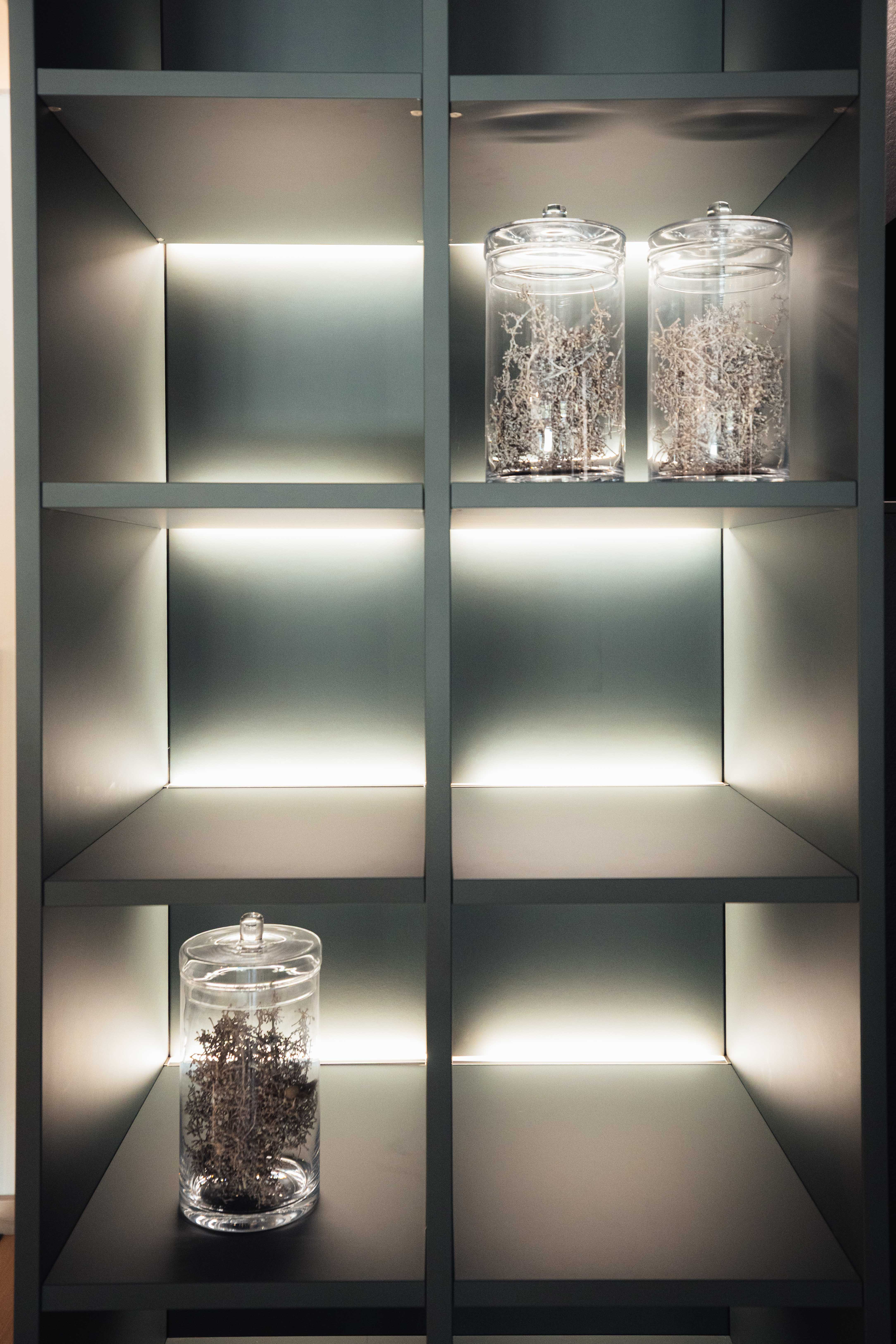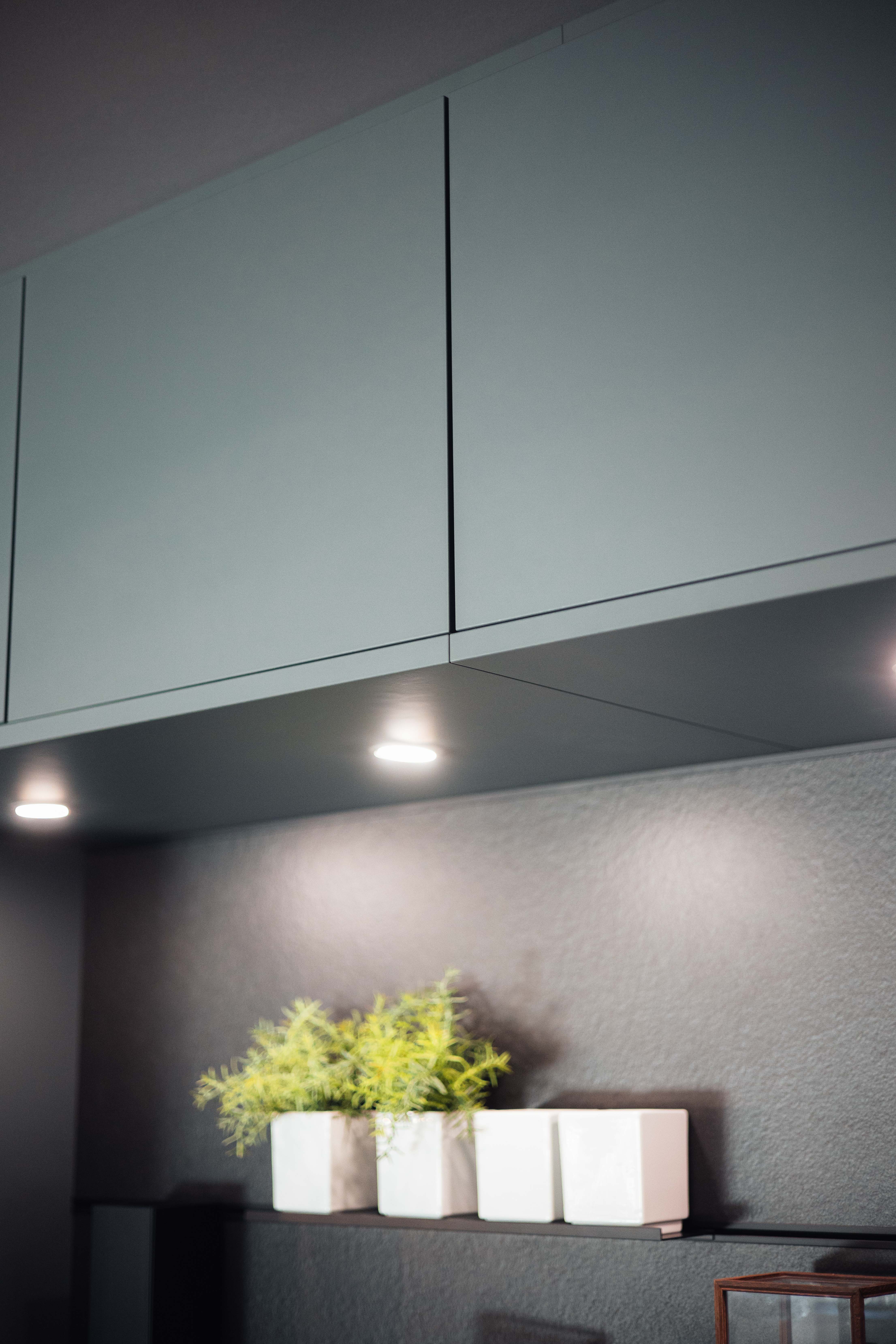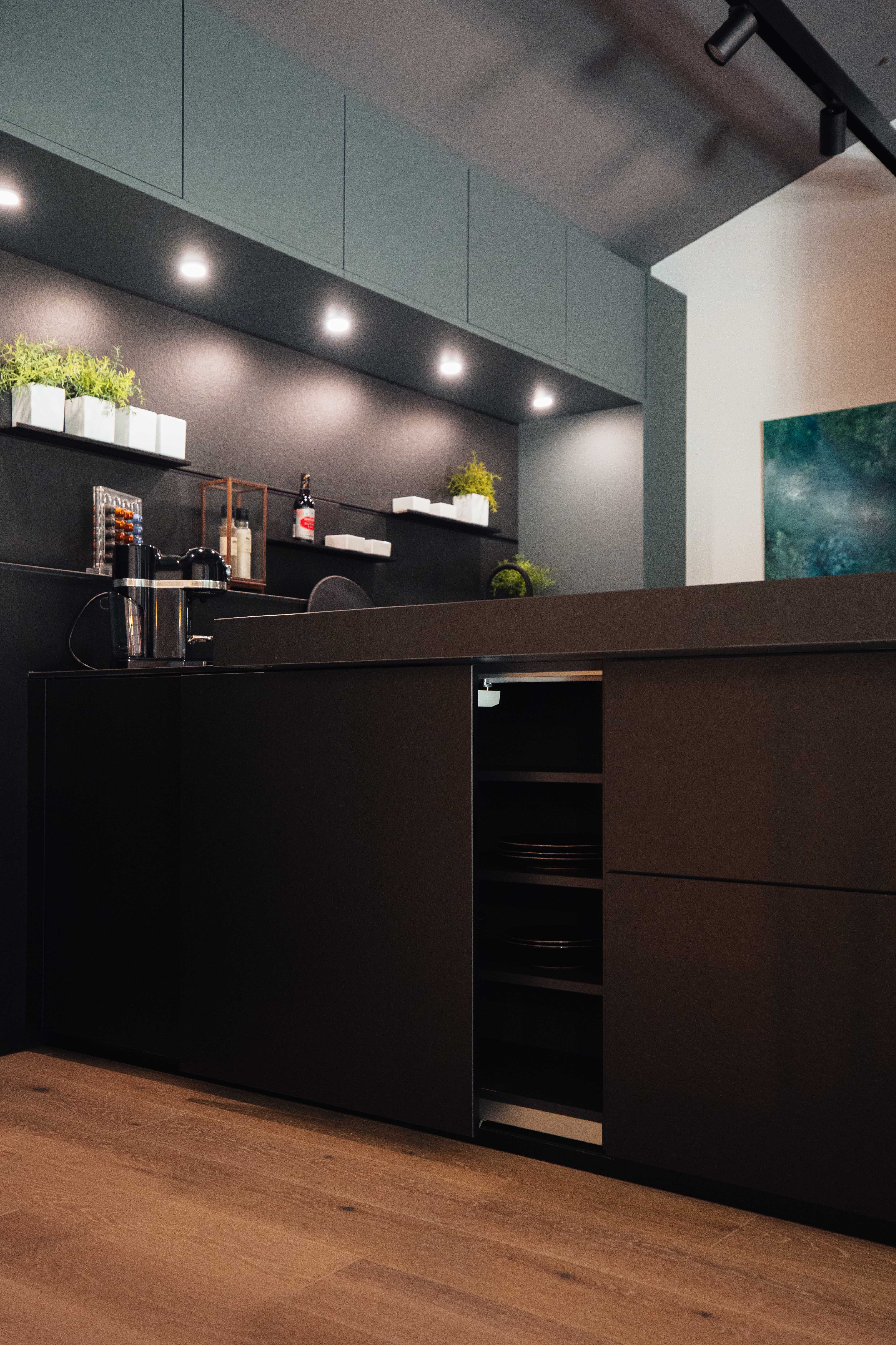 - Hoch- & Oberschränke in Kobaltgrün samtmatt mit Anti-Fingerprint-Beschichtung