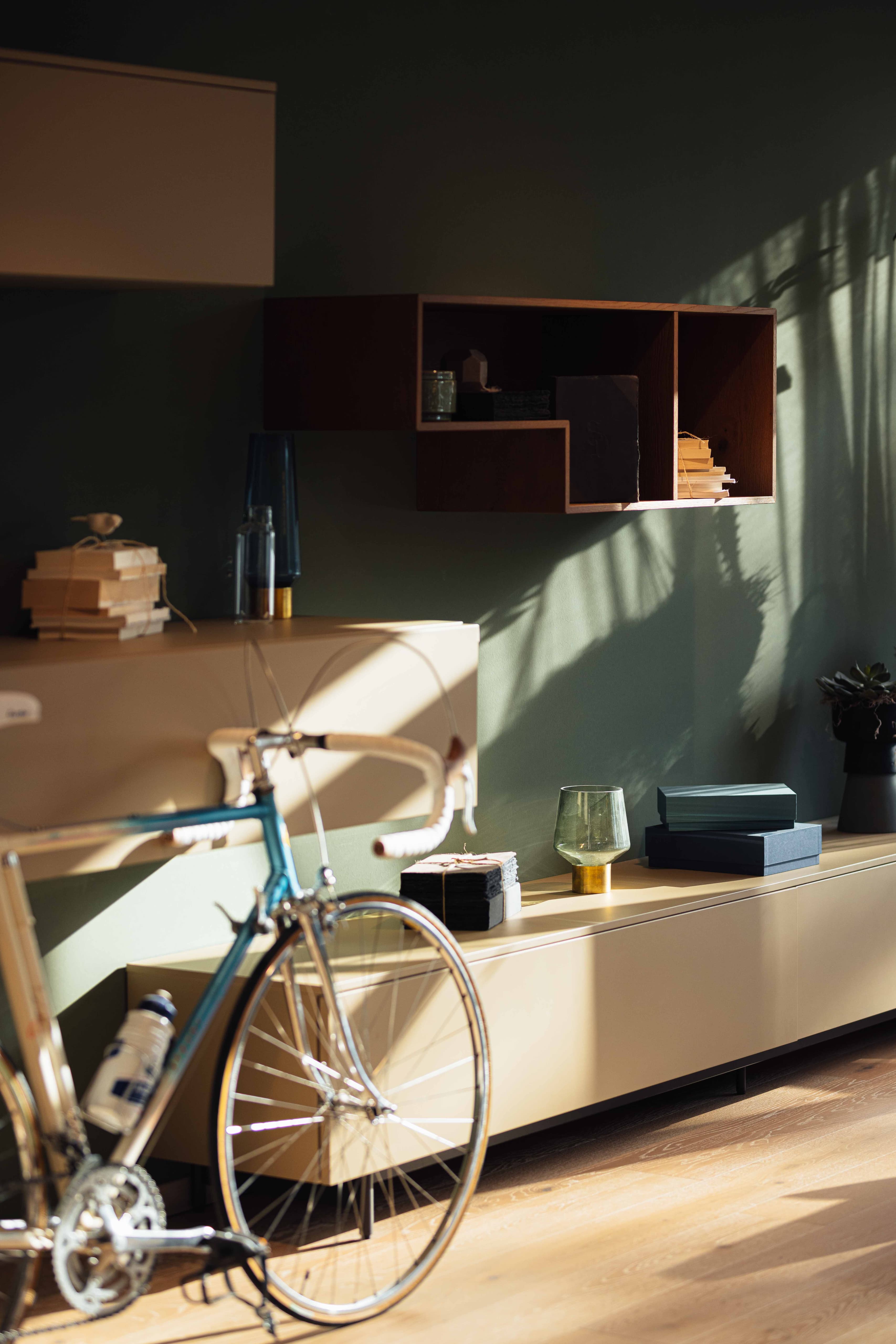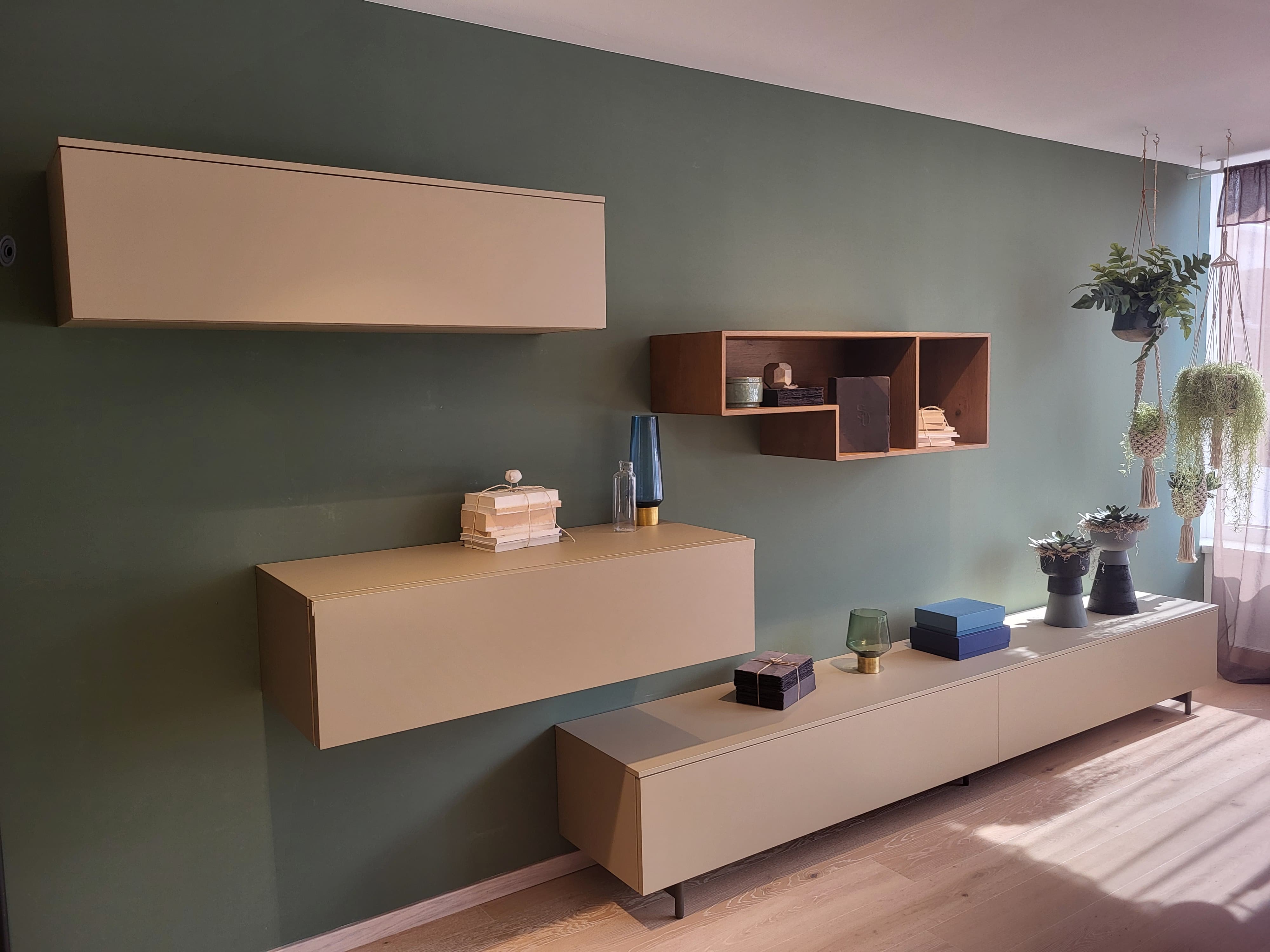 - Lowboard (300 x 45 cm) in Dune matt (1 Schublade, 1 Klappelement – siehe Foto)