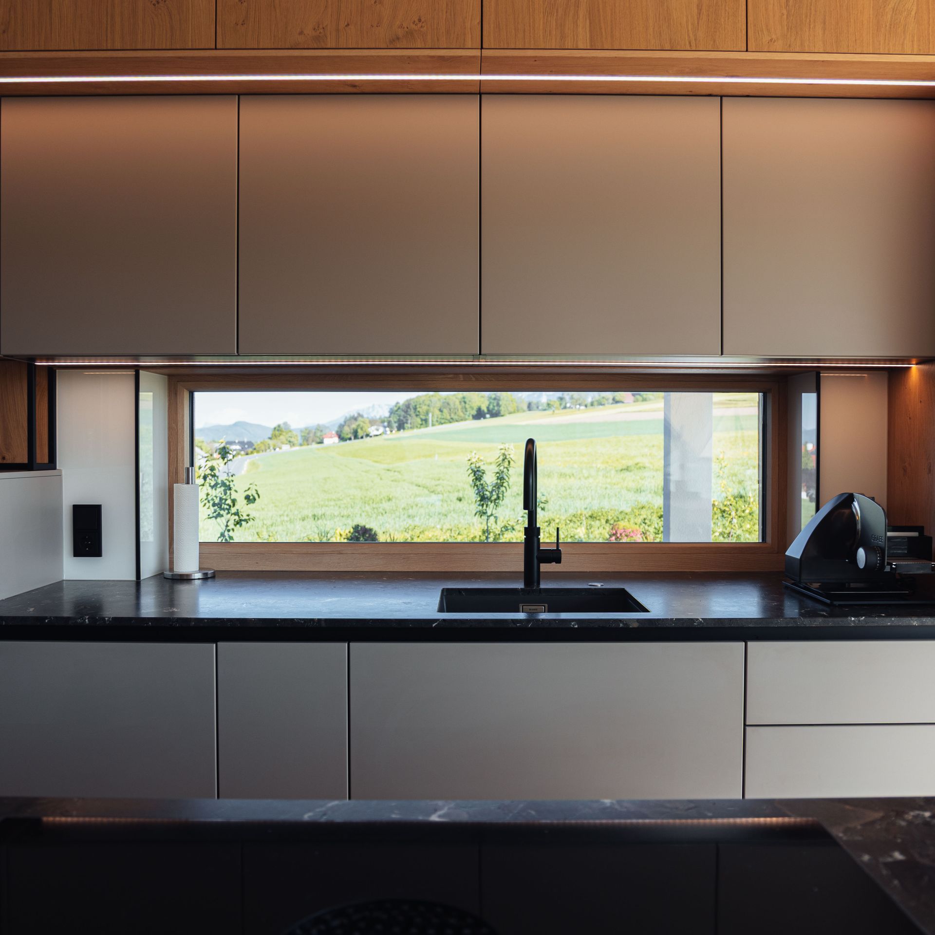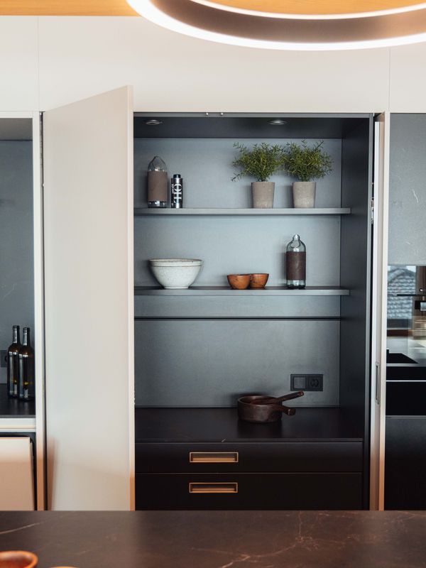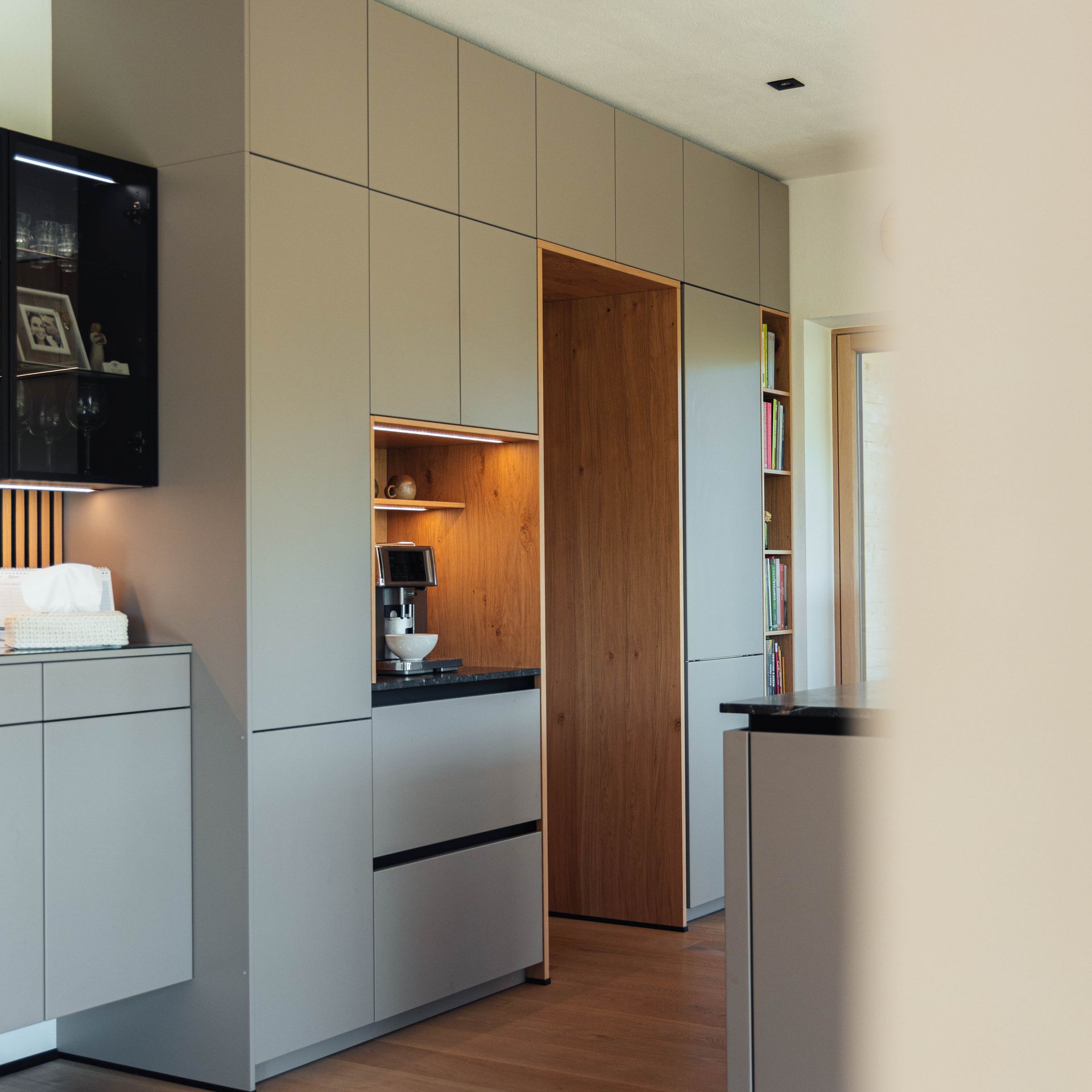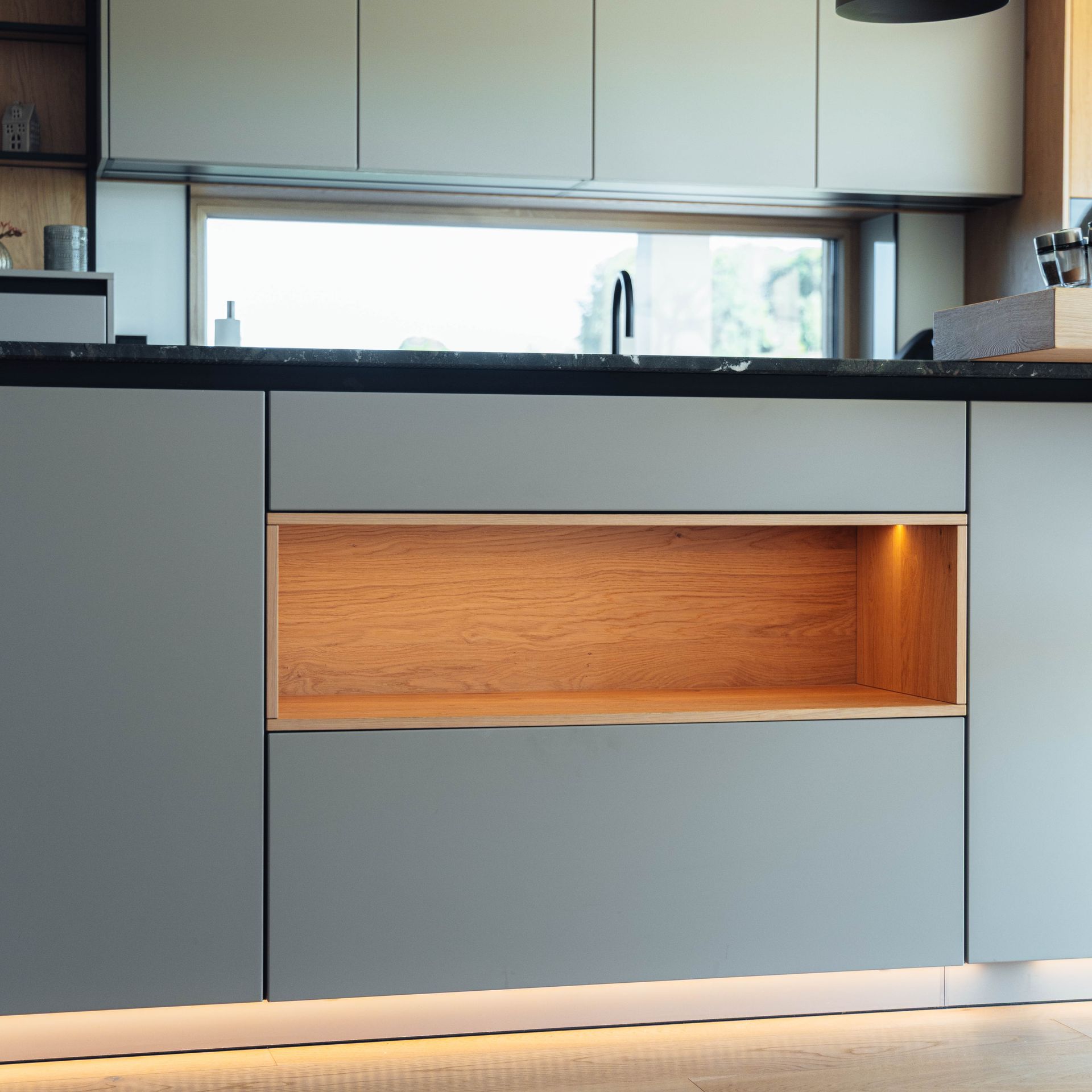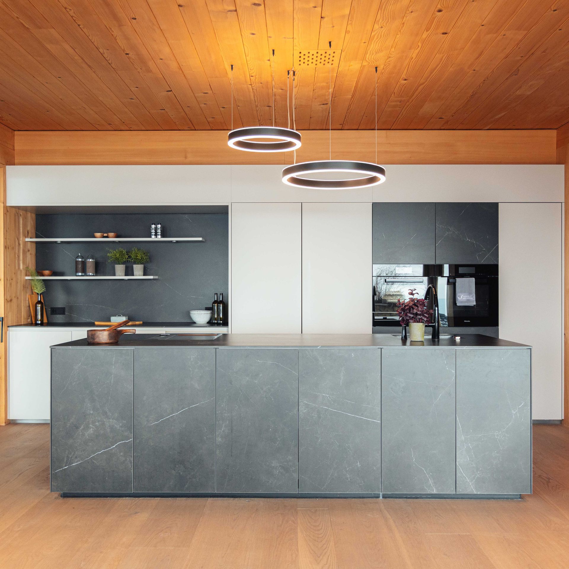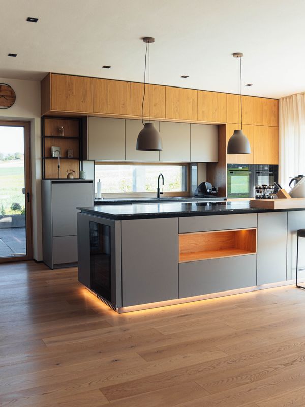 mehr erfahrenKüche in Lavaschwarz & Eiche elegant bianco hell