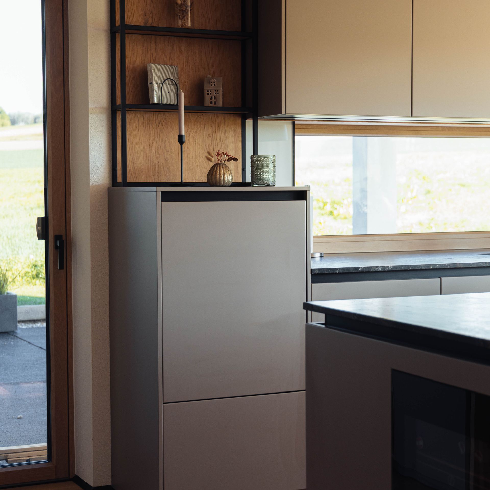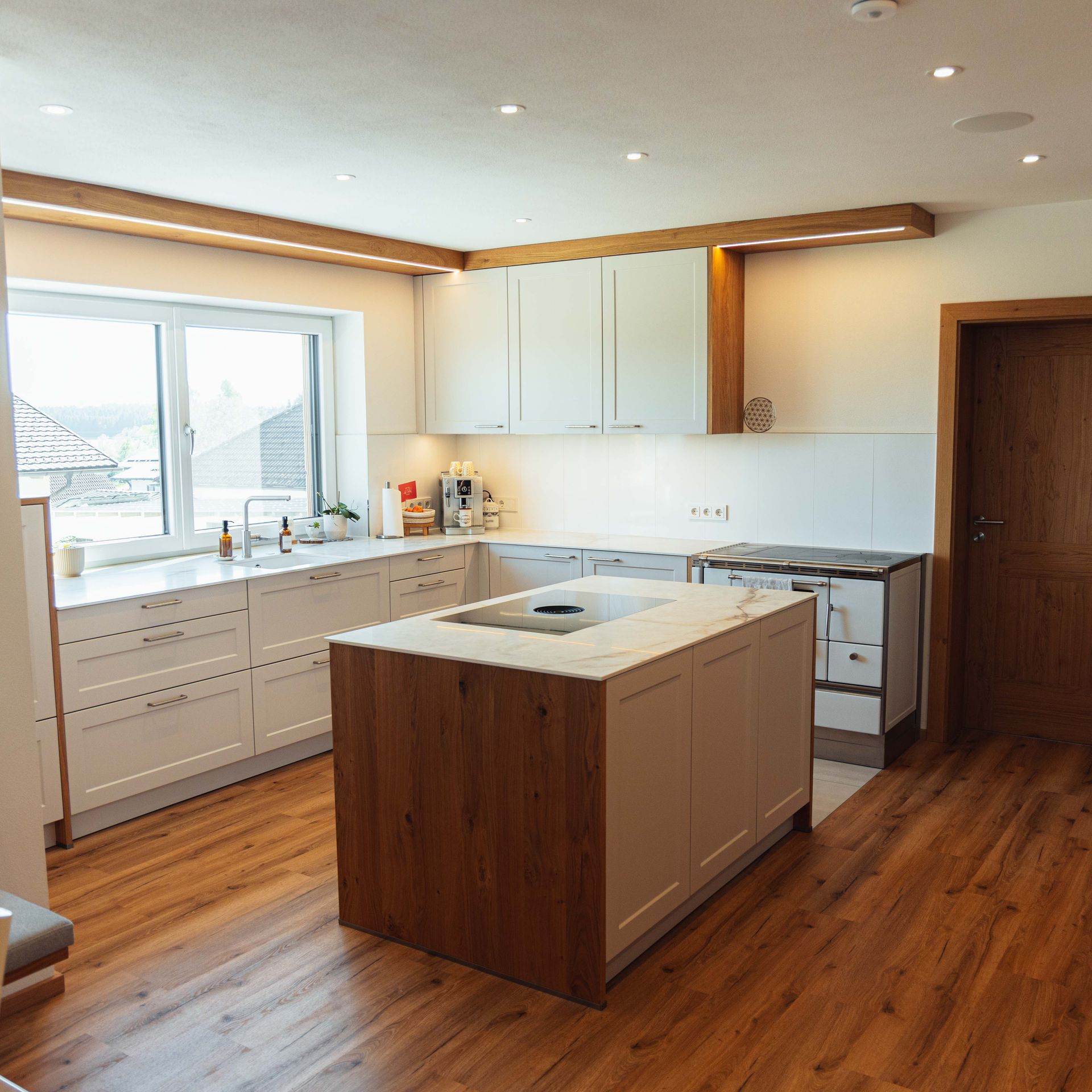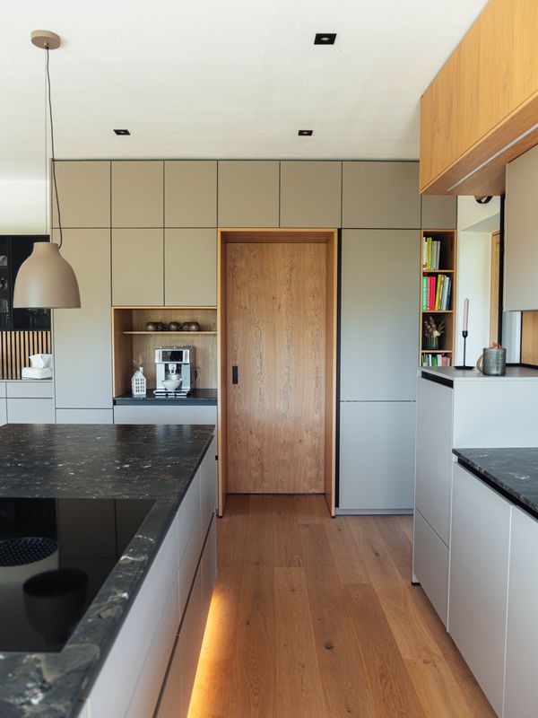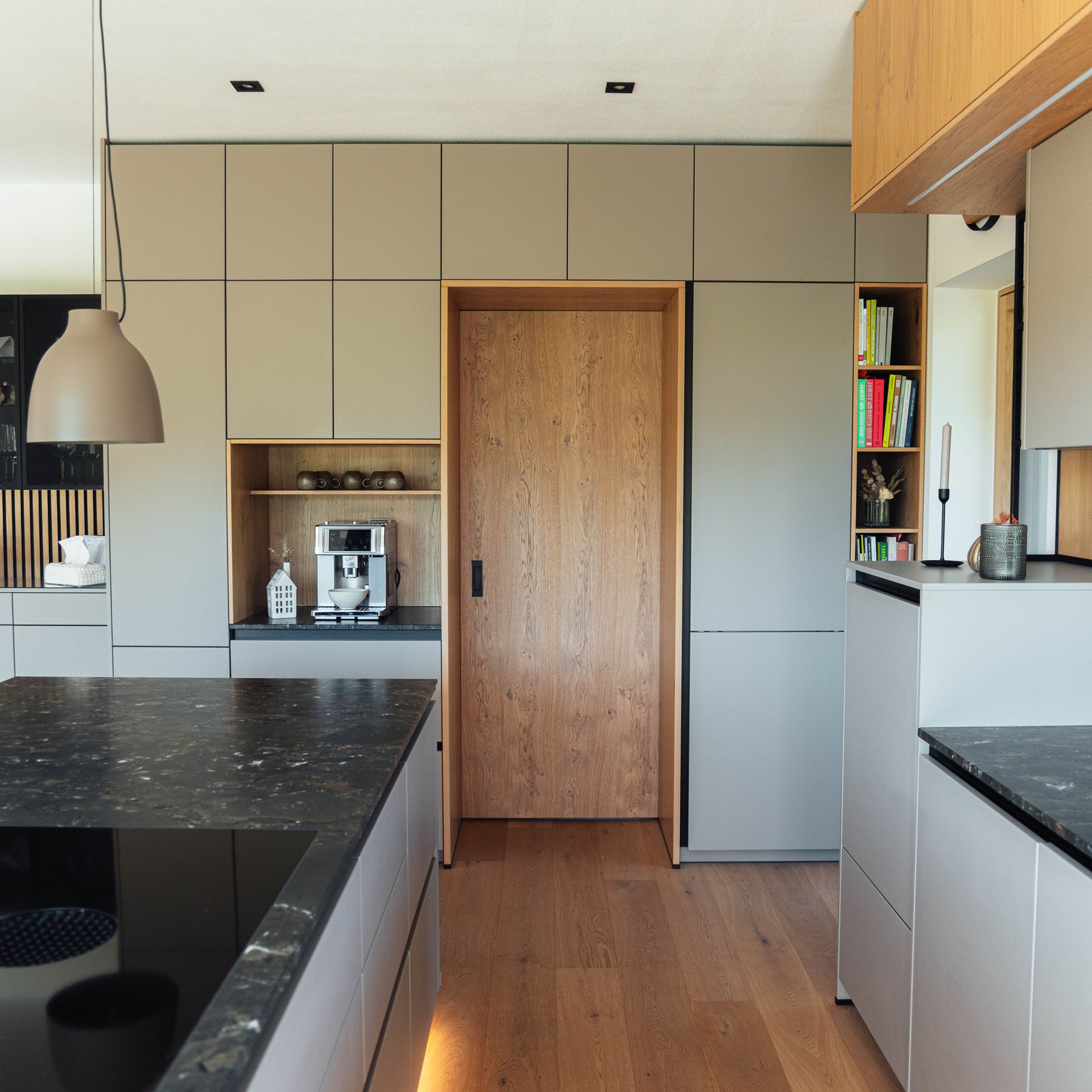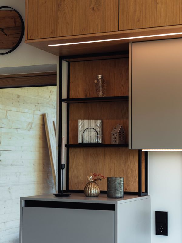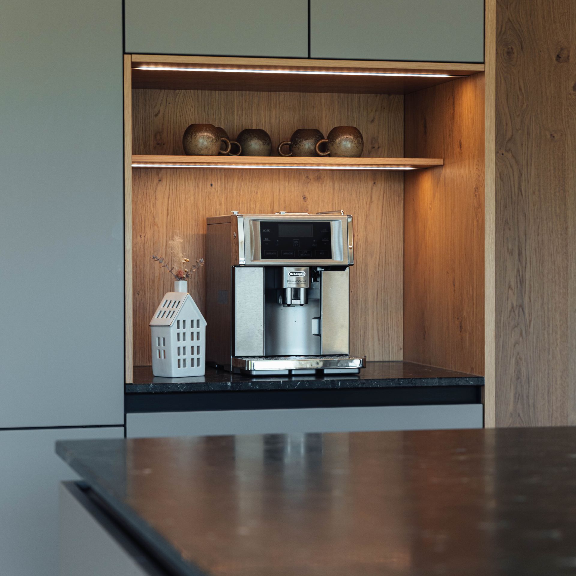 mehr erfahrenKüche in Lavaschwarz & Eiche elegant bianco hell