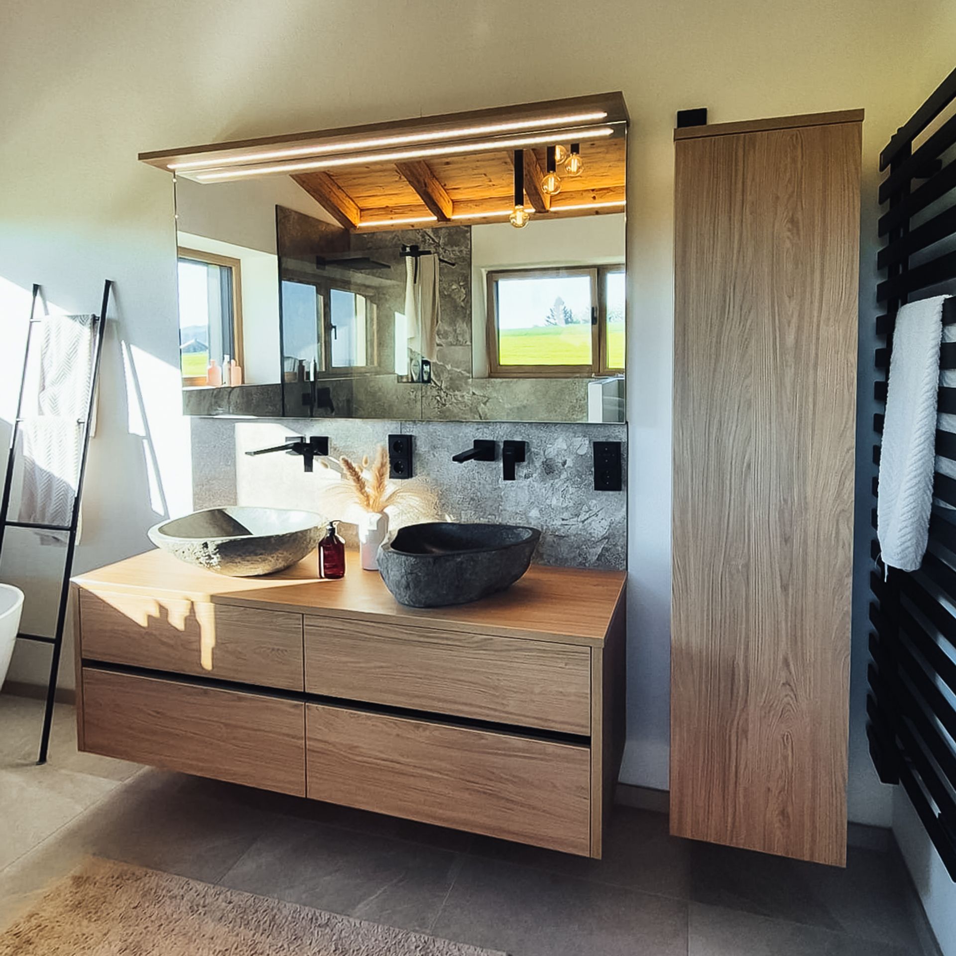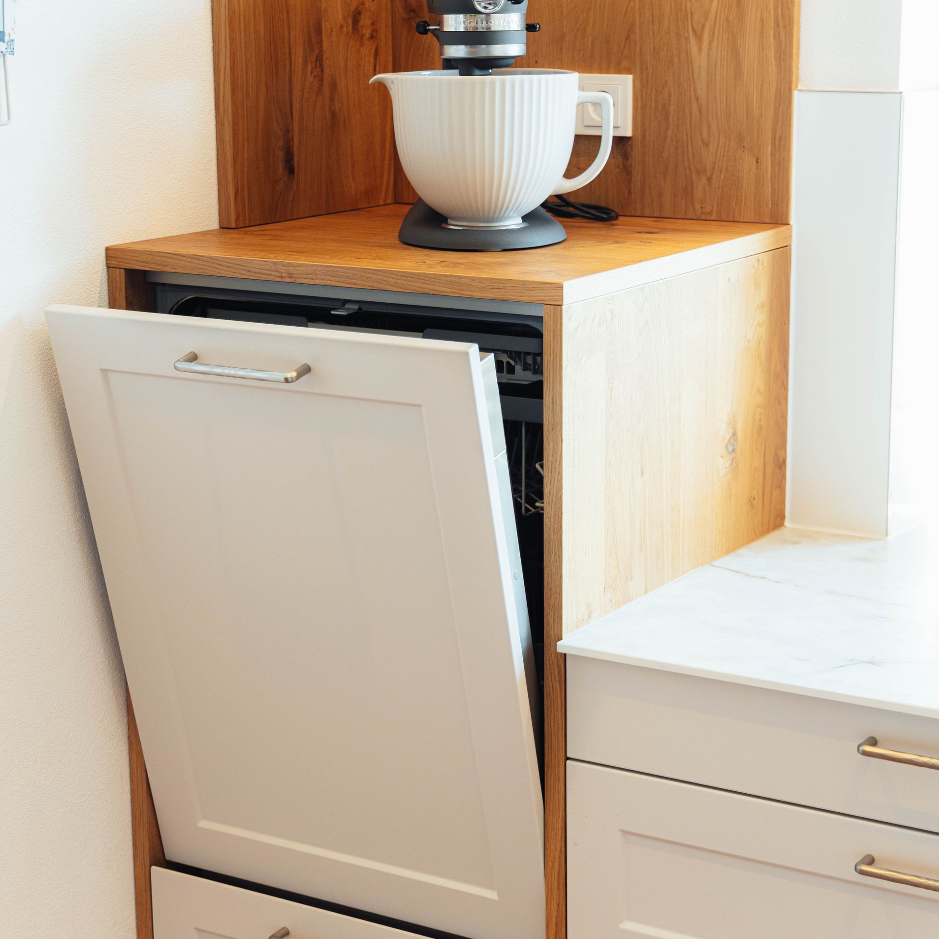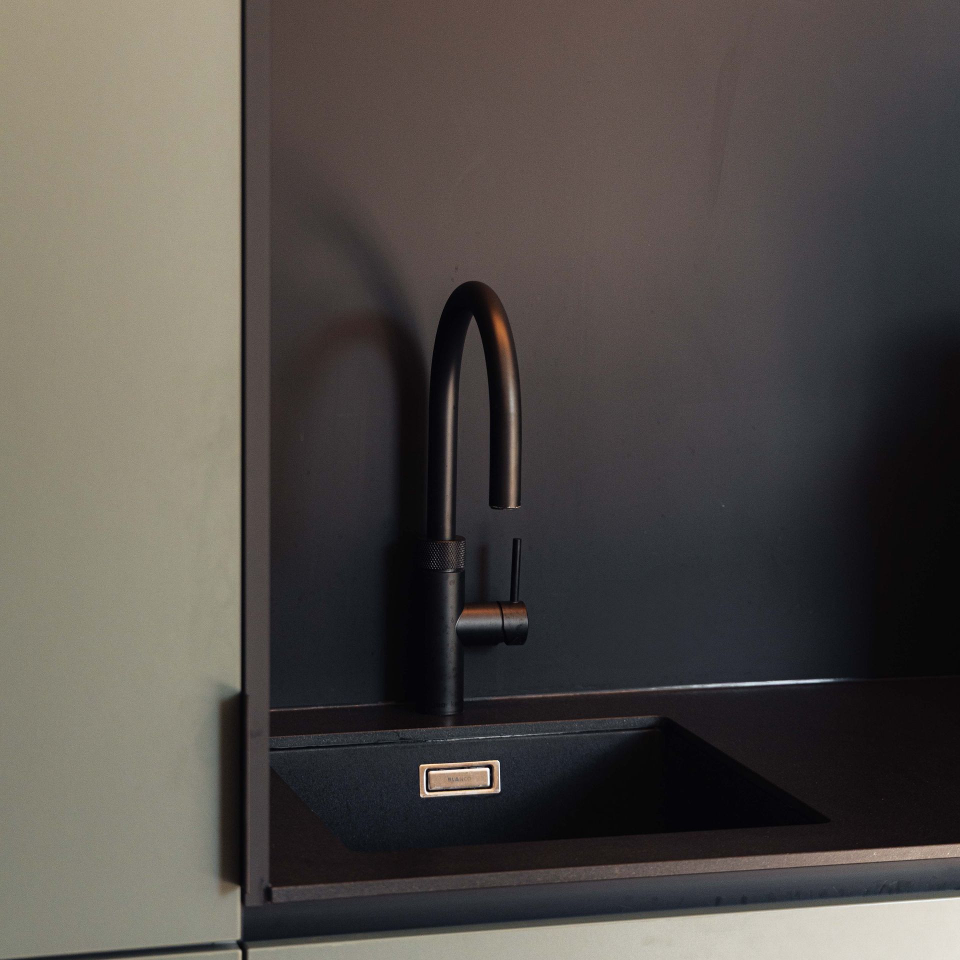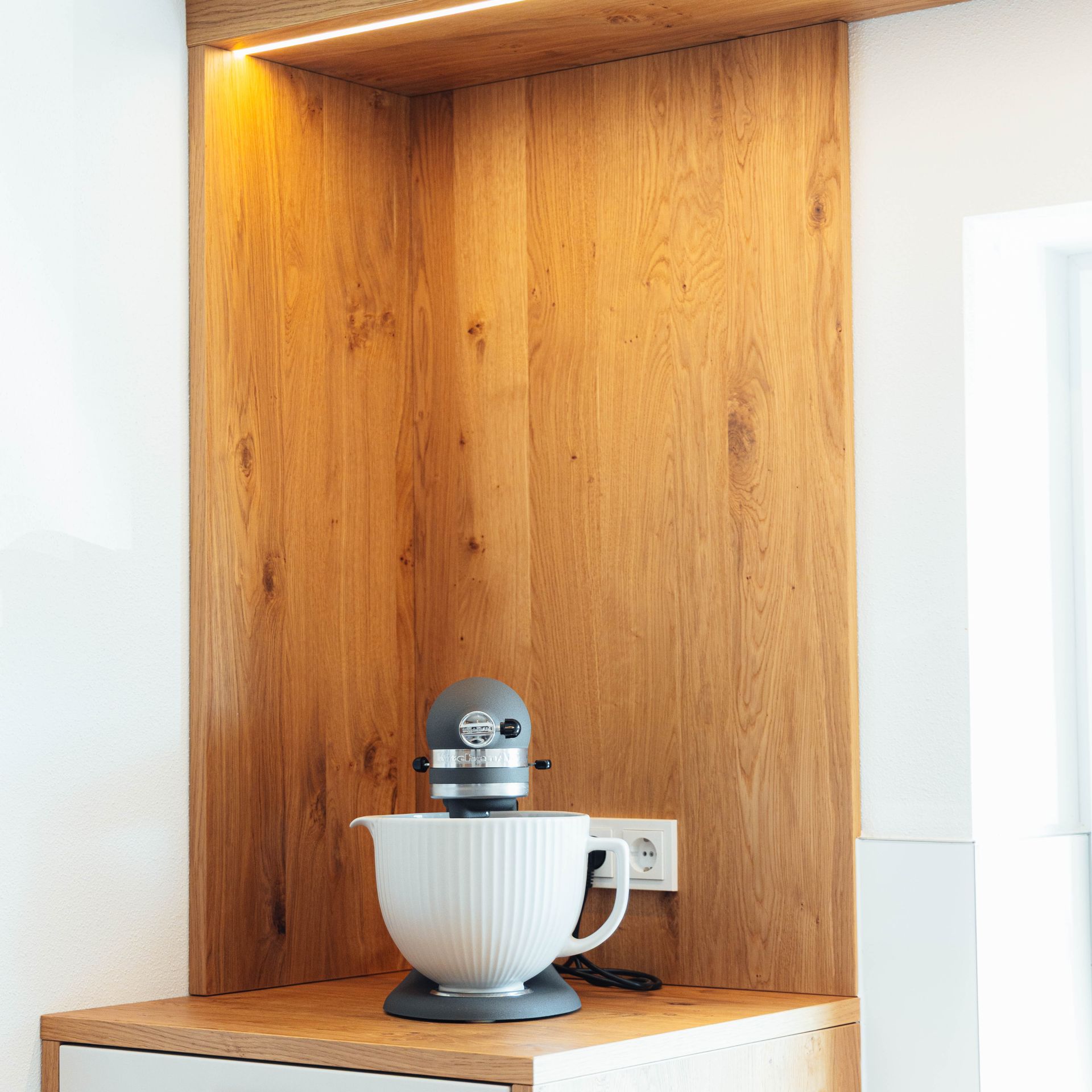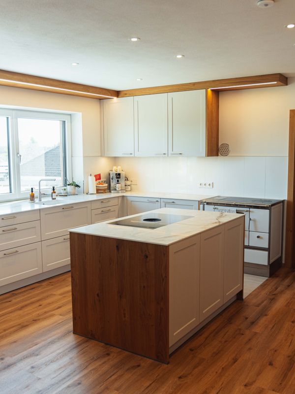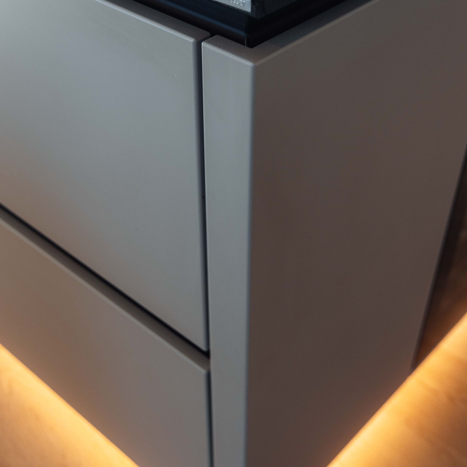 mehr erfahrenKüche in Lavaschwarz & Eiche elegant bianco hell