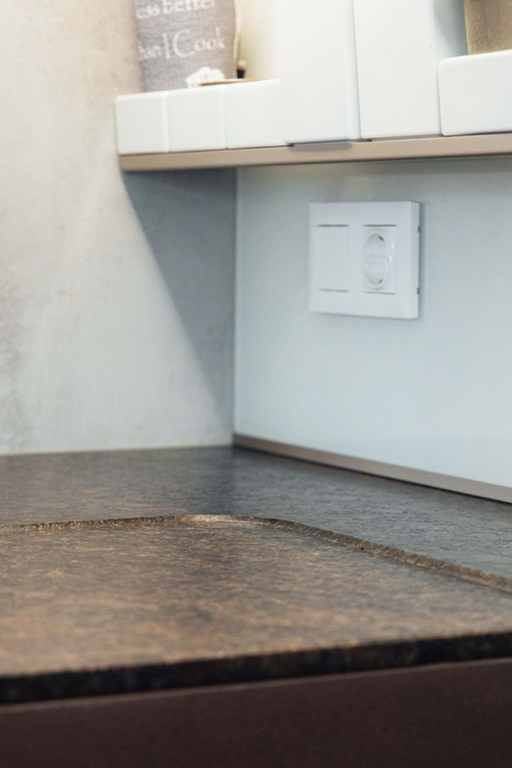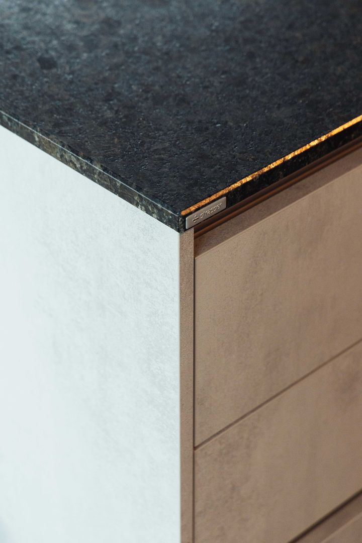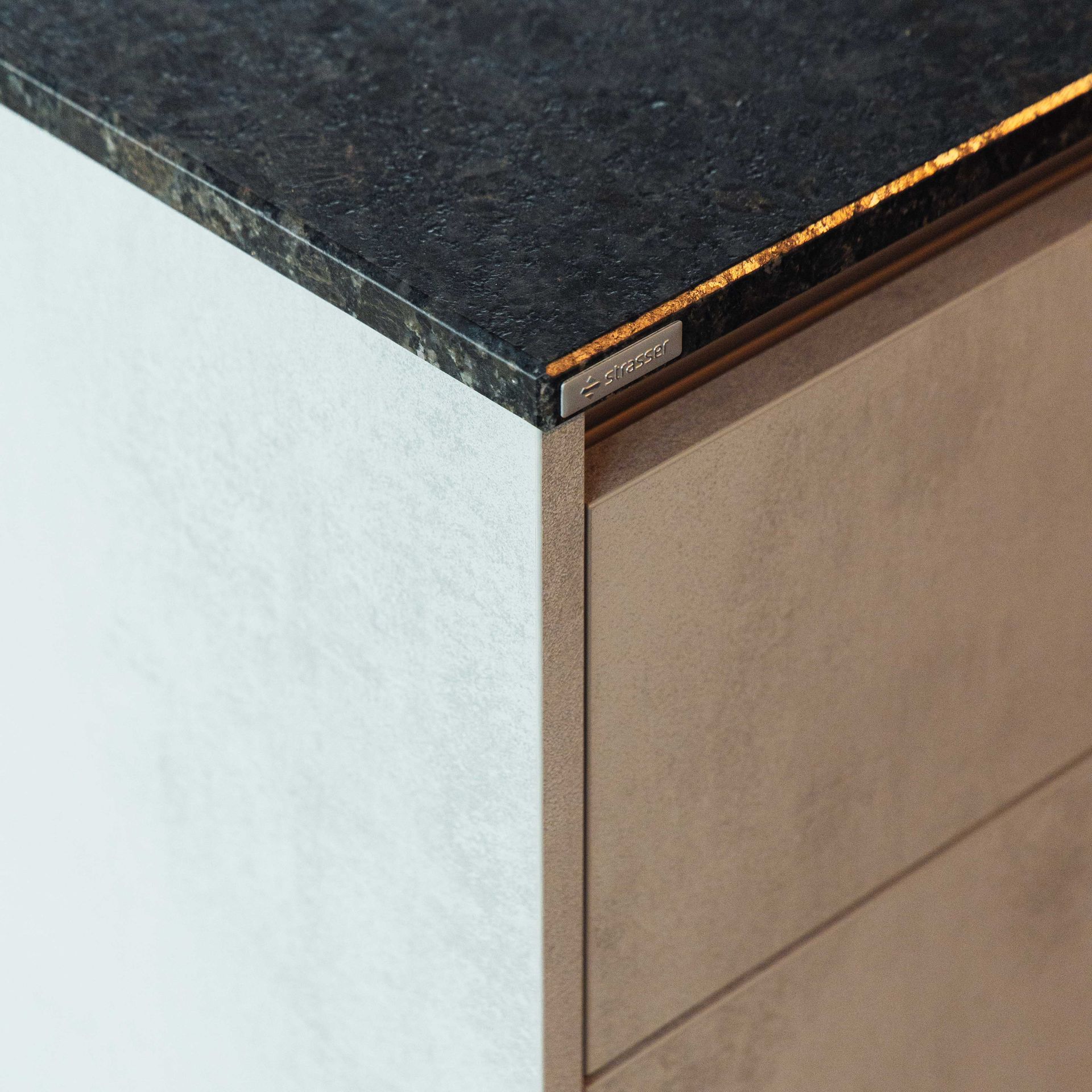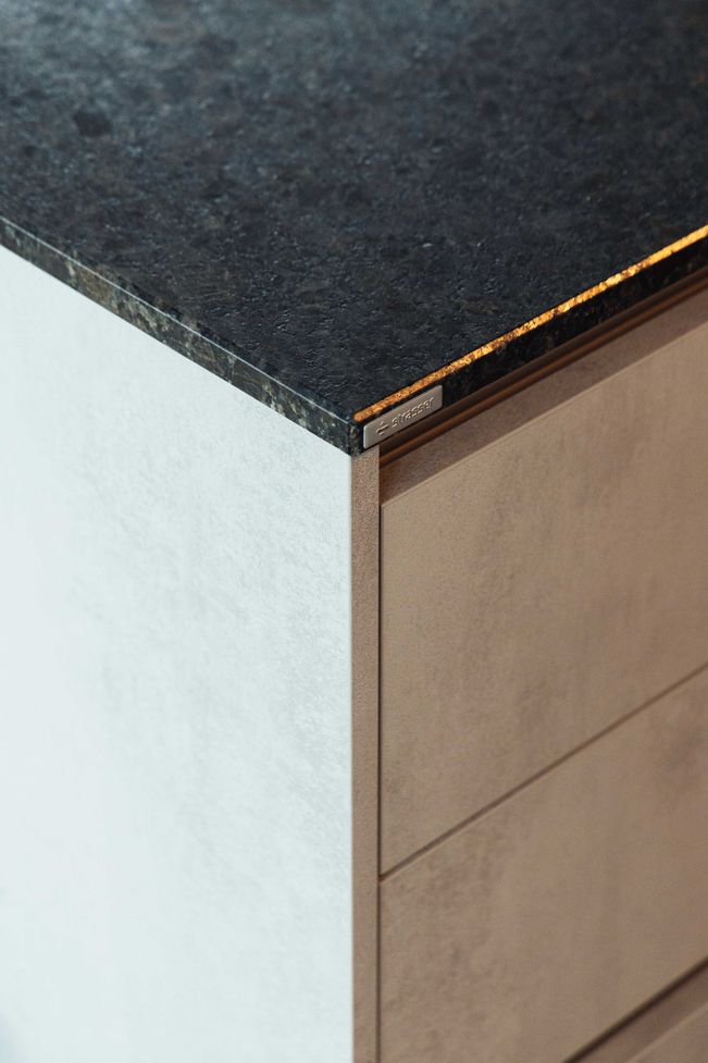 - 2 cm dicke Granit-Arbeitsplatte Coffe Brown in Leather Look von Strasser Steine mit Beckenfräsung inkl. Tropfteil