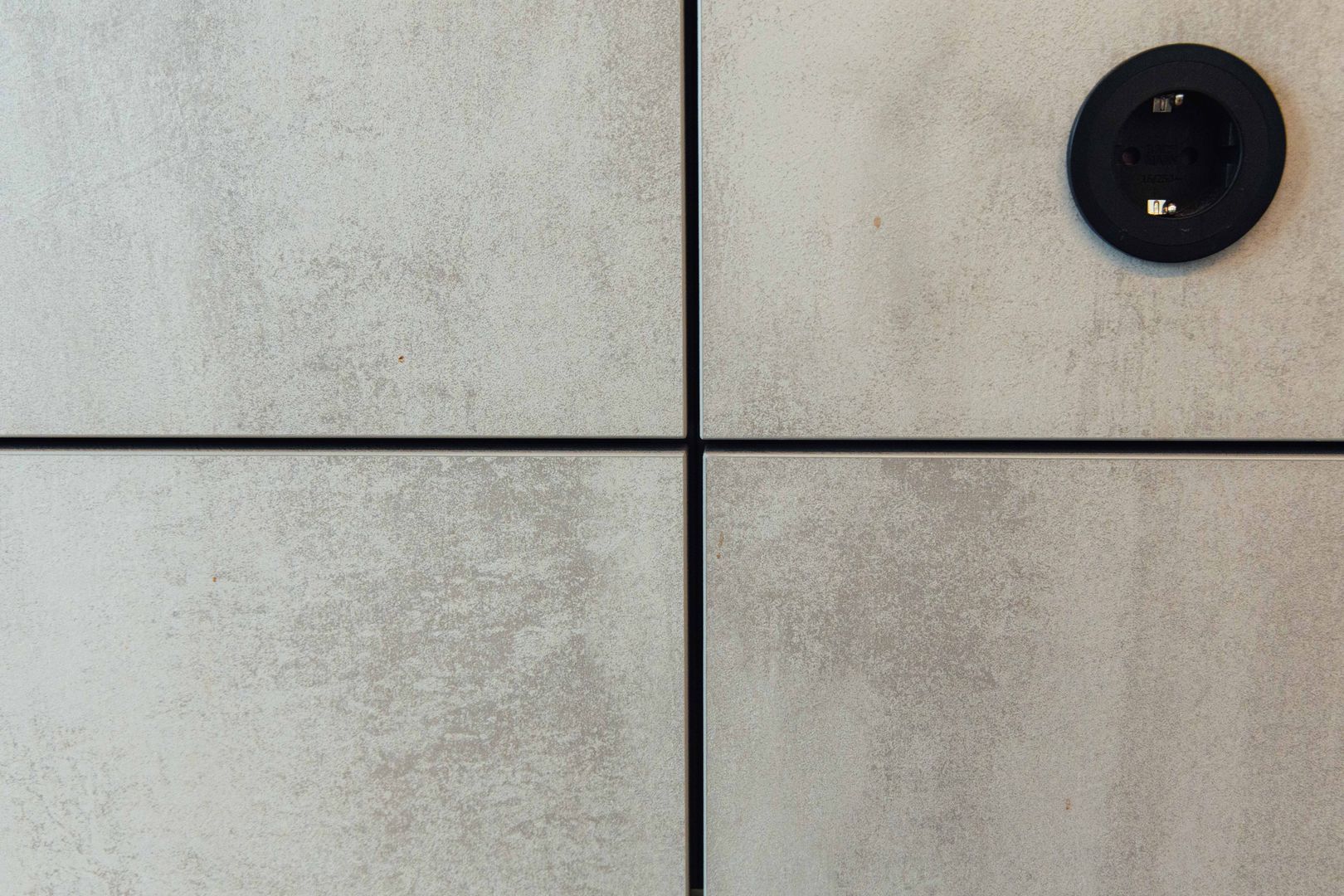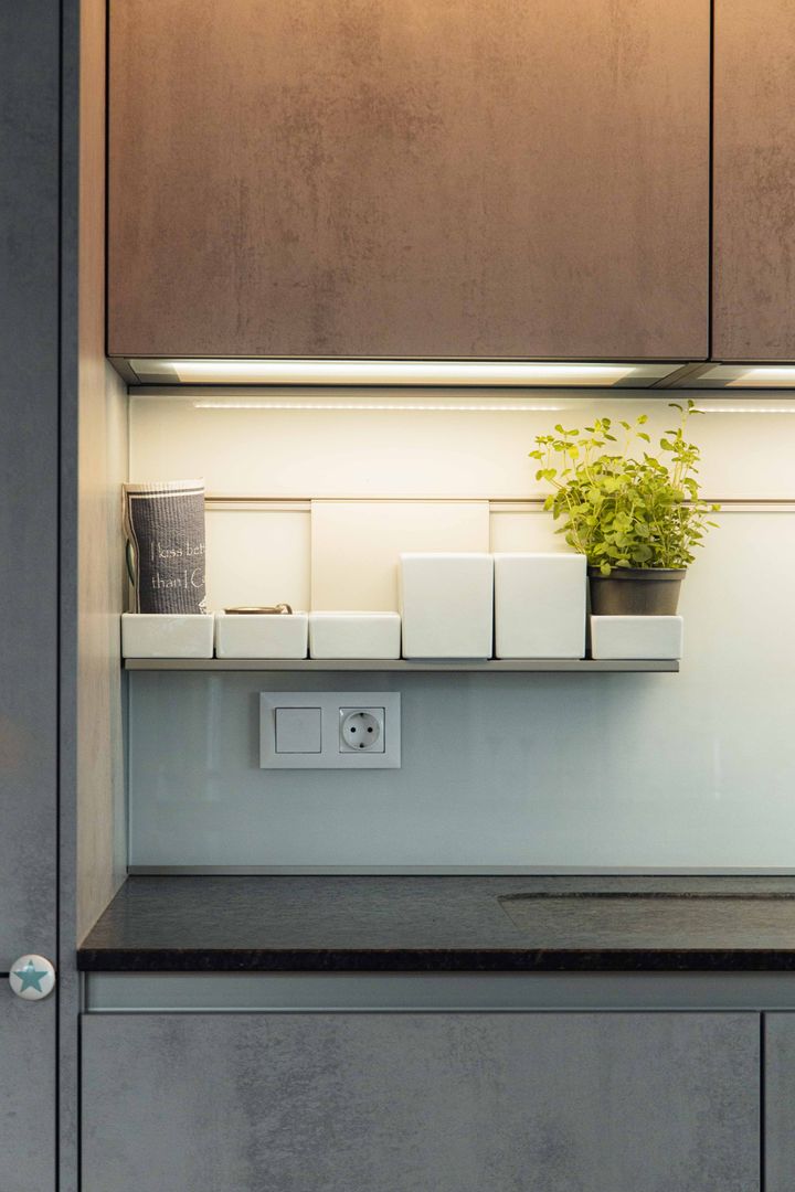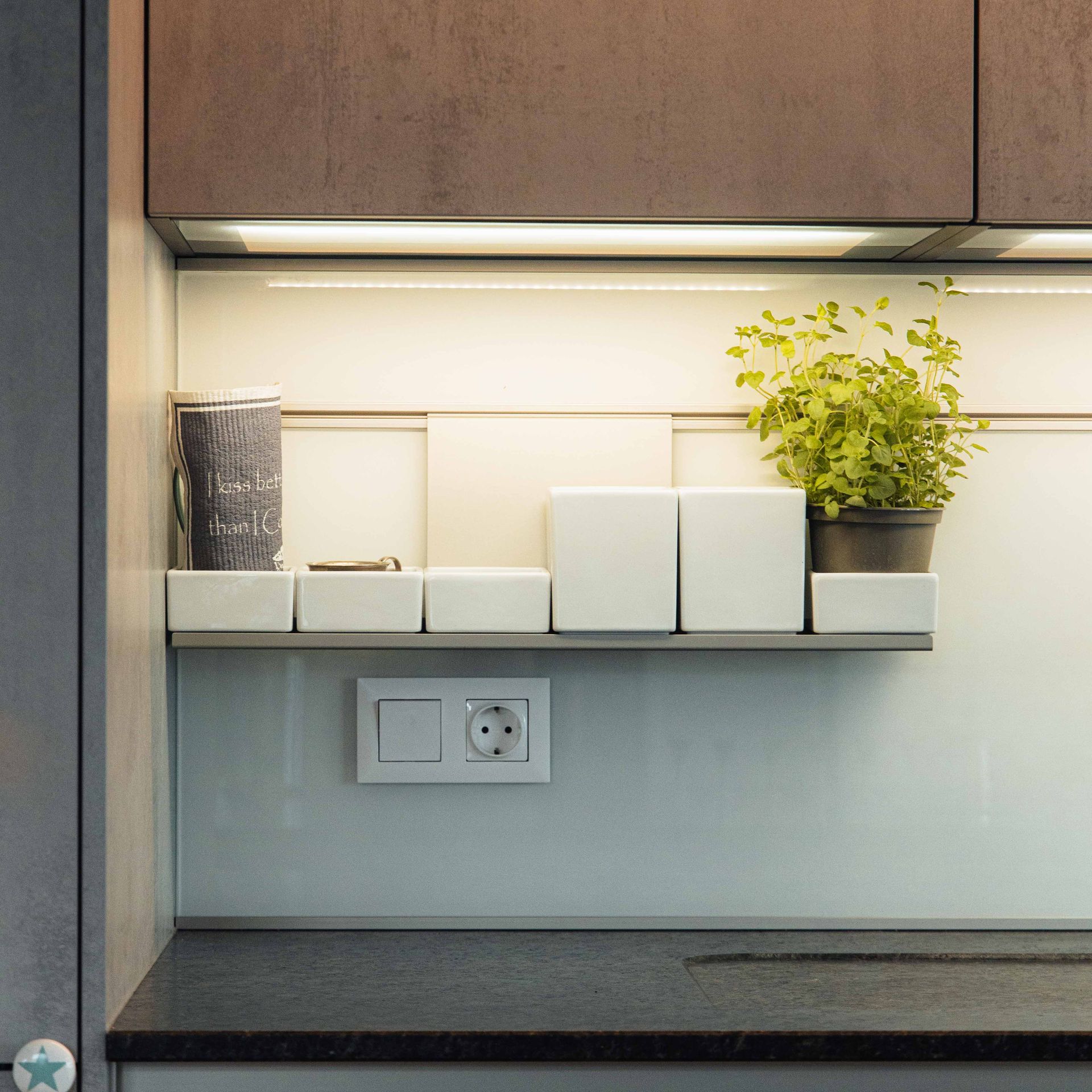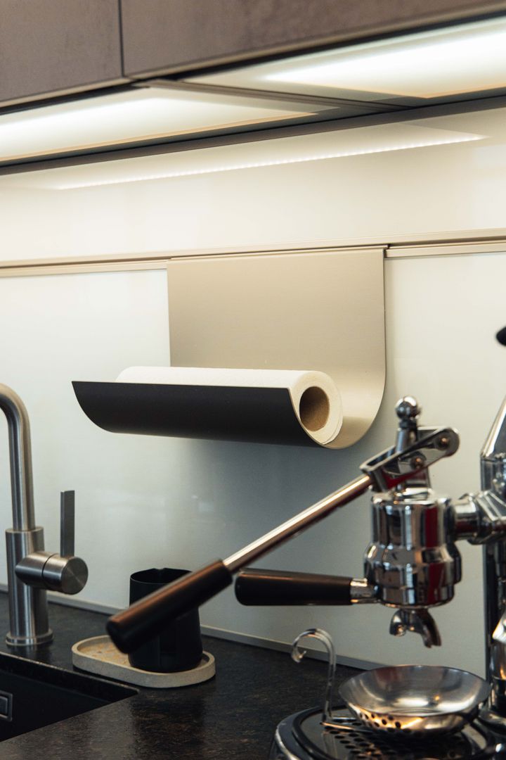 - Paneel-System in der Glasrückwand mit Zubehör in Edelstahl
